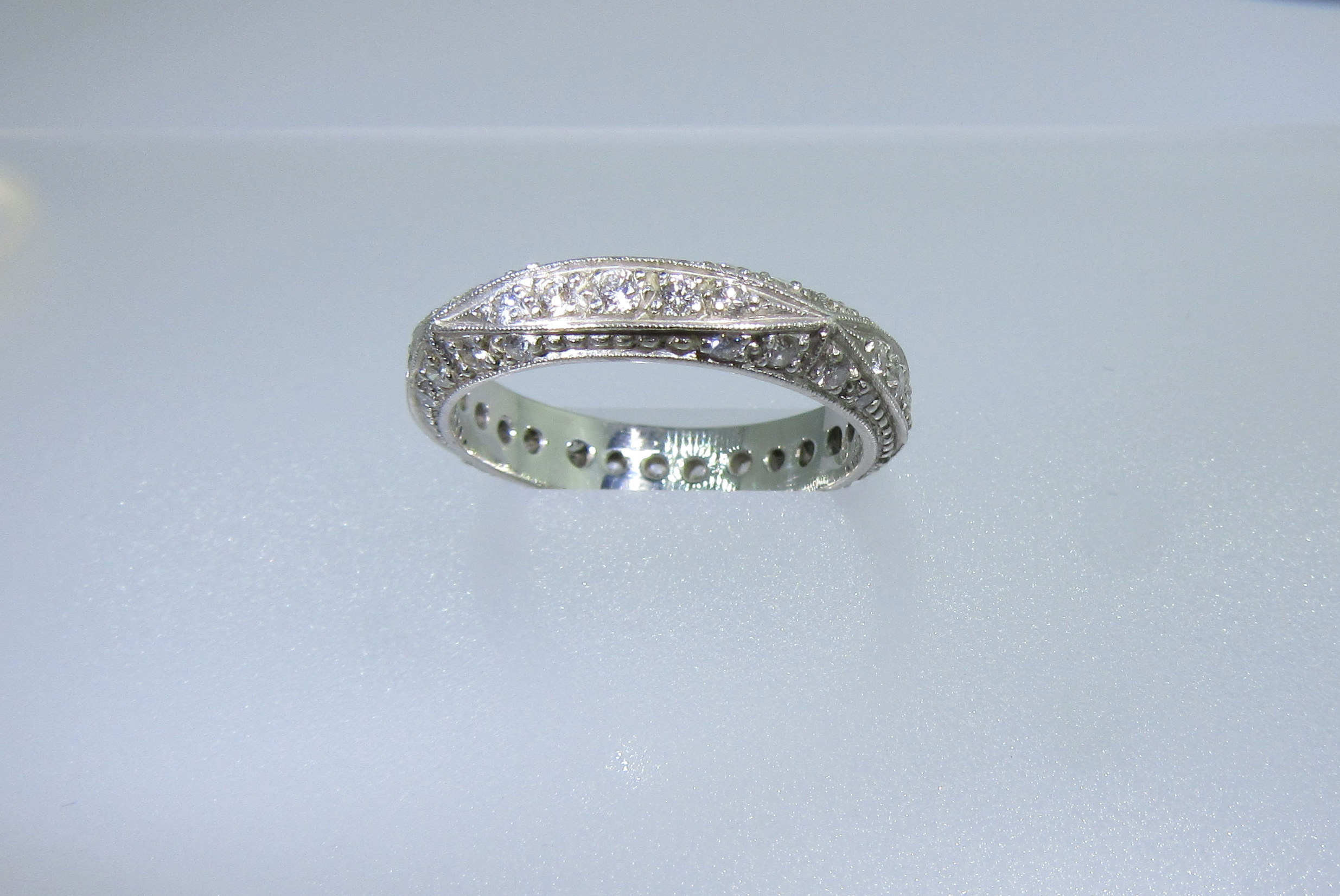 Antique Pave & Milgrain Band, 0.80ct, platinum, size 6.5
