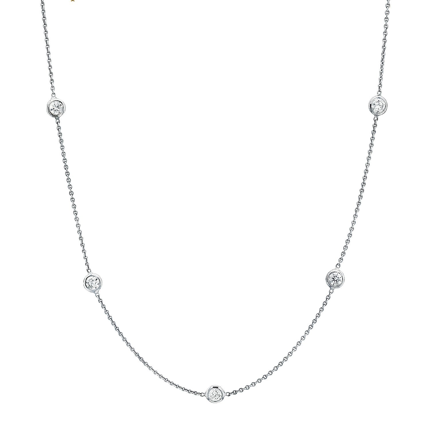 Crystals by the yard station fashion necklace, sterling silver with white gold overlay, 36″ long. Can be worn long or doubled