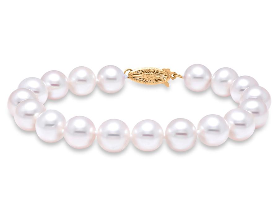 MASTOLONI – 14K White Gold 8.5-9.5MM White Round “A” Quality Freshwater Pearl Bracelet 7 Inches