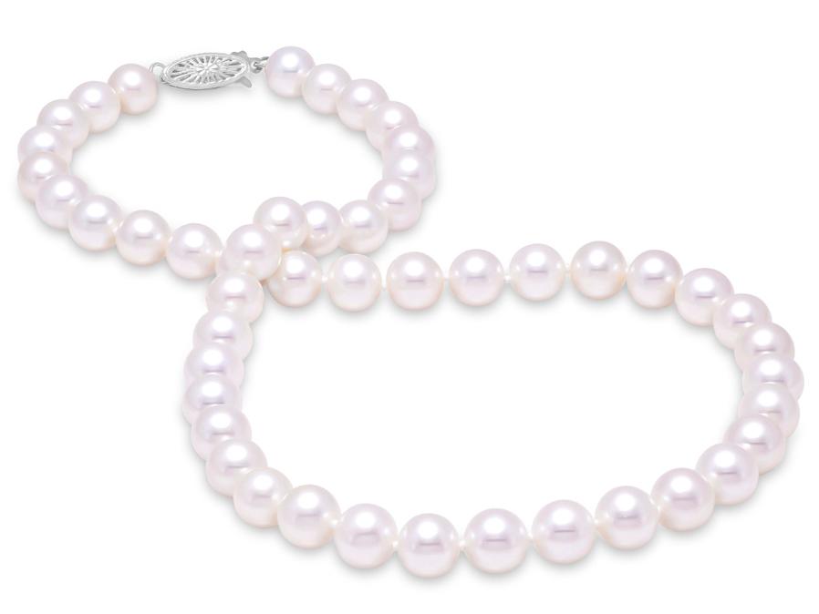 MASTOLONI – 14K White Gold 9.5-10.5MM White Round “A” Quality Freshwater Pearl Strand 16 Inches