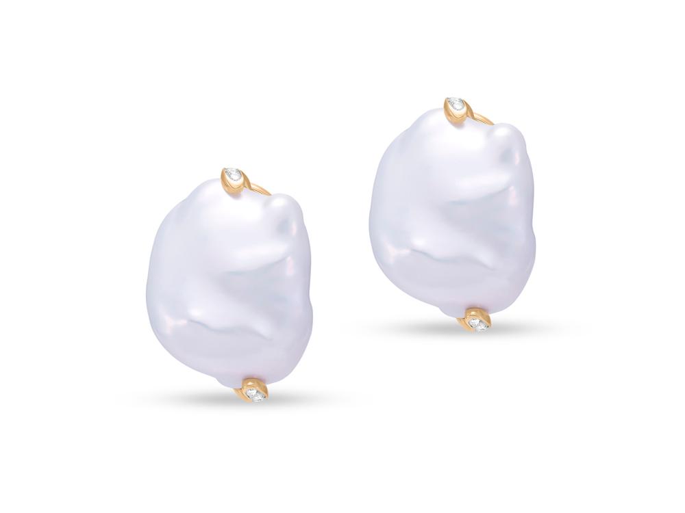 MASTOLONI – 14K Yellow Gold 15-20MM White Keshi Freshwater Pearl Clip/Lever Back Earring with 12 Diamonds 0.08 TCW