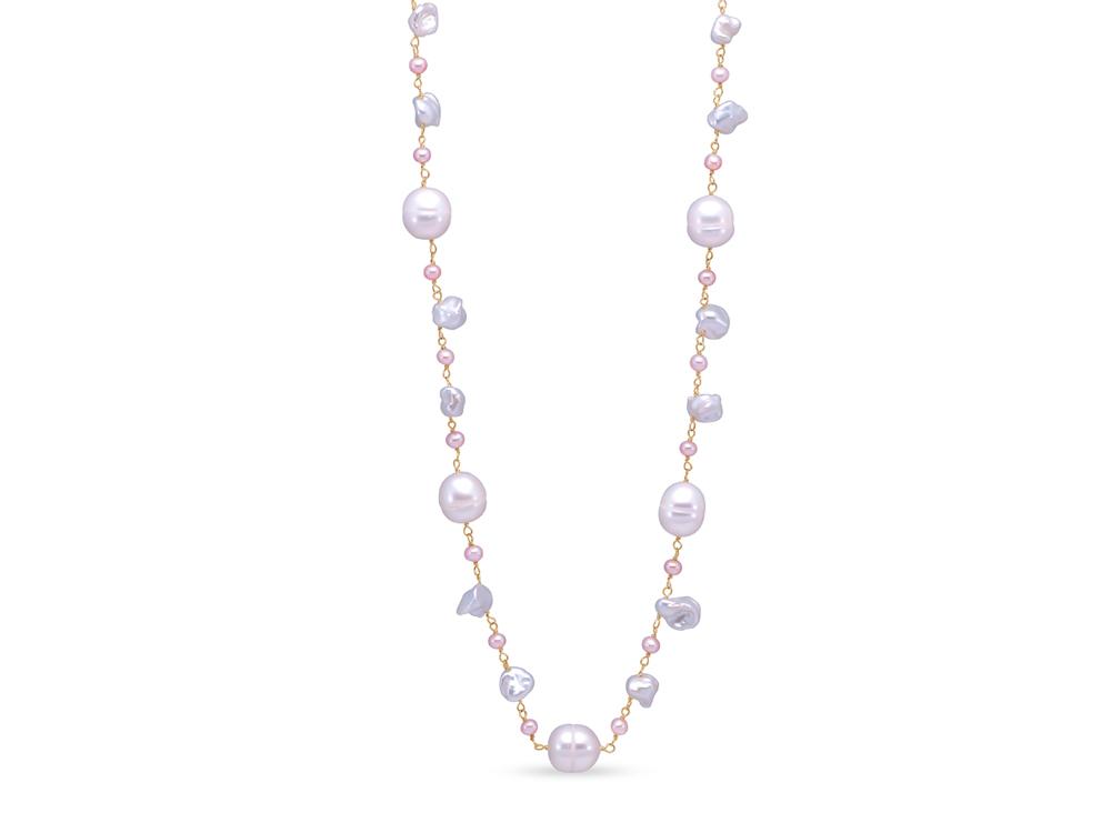 MASTOLONI – 14K Yellow Gold 3.5-9MM Multicolor Pink & White Keshi Freshwater Pearl Necklace 18 Inches