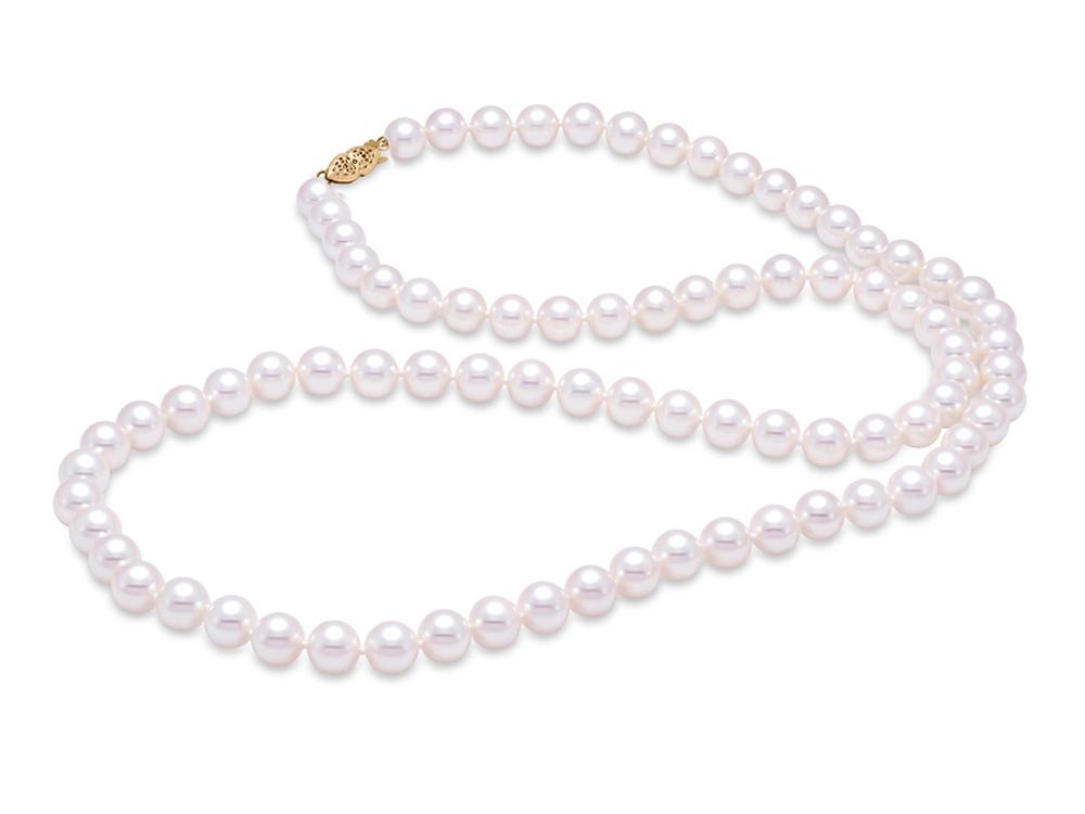 MASTOLONI – 14K Yellow Gold 6.5-7MM White Round “A” Quality Freshwater Pearl Strand 24 Inches