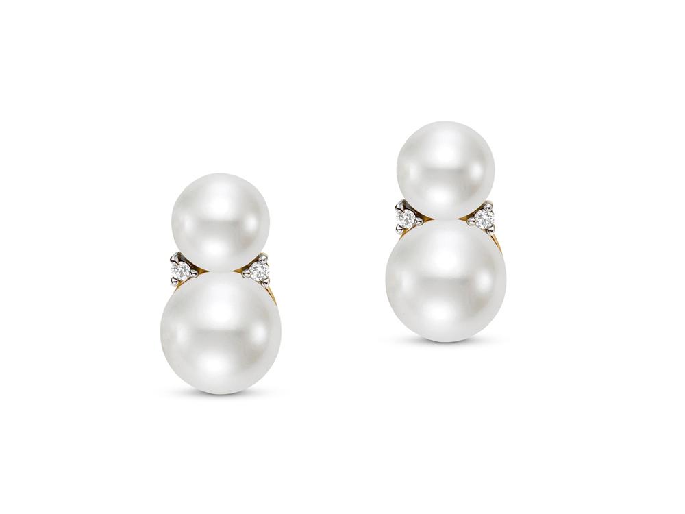 MASTOLONI – 14K Yellow Gold 6-8MM White Drop Shaped Freshwater Pearl Earring with 4 Diamonds 0.04 TCW
