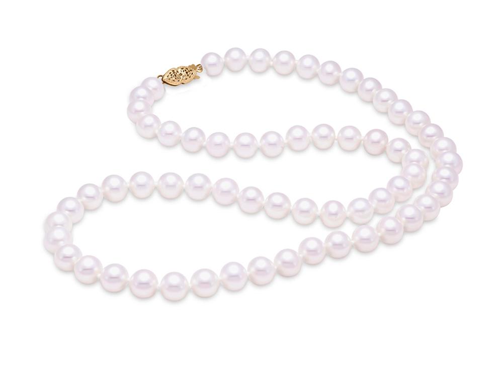 MASTOLONI – 14K Yellow Gold 7-7.5MM White Round “A” Quality Freshwater Pearl Strand 20 Inches