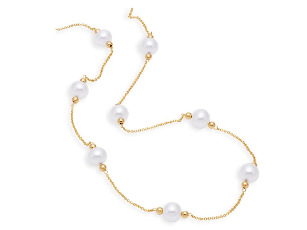MASTOLONI – 14K Yellow Gold 7-8MM White Near Round Freshwater Pearl Necklace 18 Inches