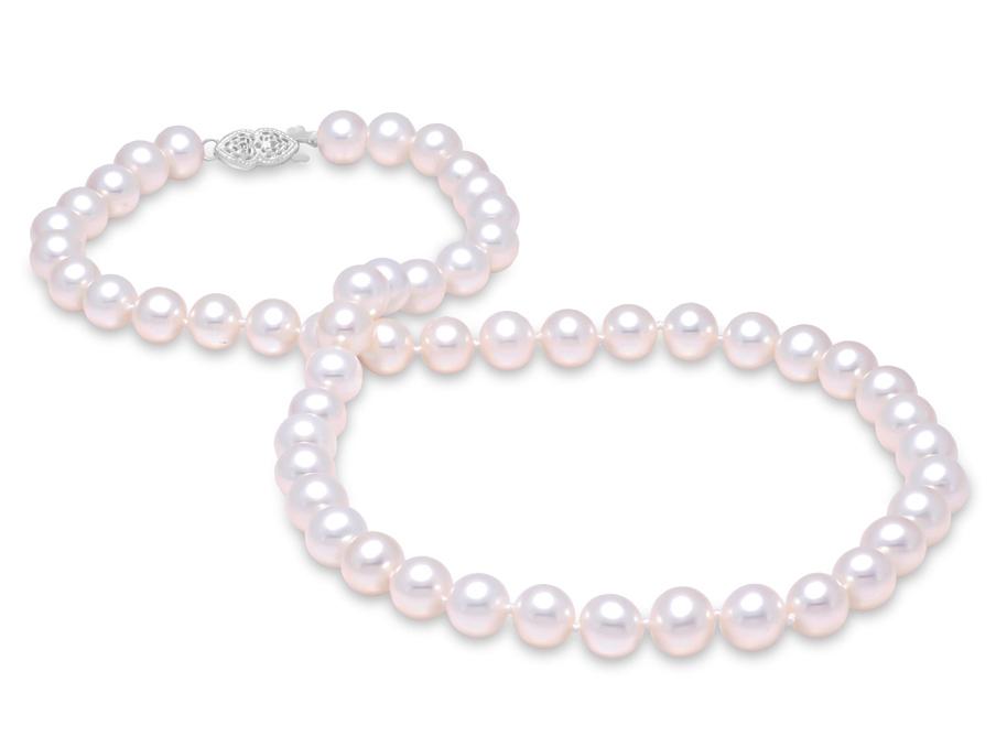 MASTOLONI – 14K Yellow Gold 8.5-9.5MM White Round “A” Quality Freshwater Pearl Strand 18 Inches