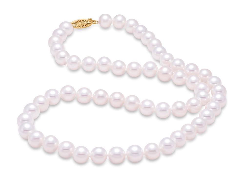 MASTOLONI – 14K Yellow Gold 8-8.5MM White Round “A” Quality Freshwater Pearl Strand 20 Inches
