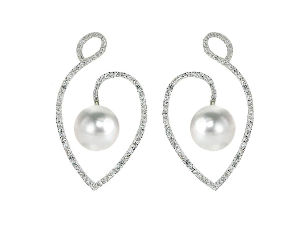 MASTOLONI – 18K White Gold 11.5MM White Oval Shaped South Sea Pearl Earring with 178 Diamonds 1.07 TCW