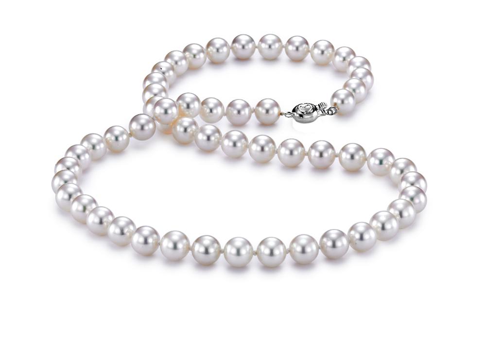 MASTOLONI – 18K White Gold 7.5-8MM White Round “A” Quality Akoya Pearl Strand 18 Inches