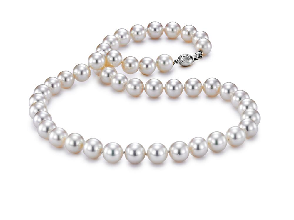MASTOLONI – 18K White Gold 8.5-9MM White Round “A” Quality Akoya Pearl Strand 18 Inches