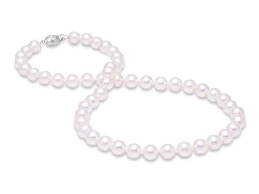 MASTOLONI – 18K White Gold 8-8.5MM White Round “A” Quality Akoya Pearl Strand 16 Inches