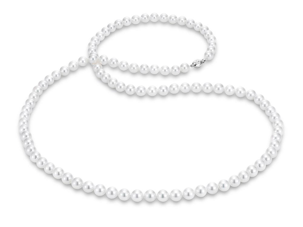 MASTOLONI – 18K White Gold 8-8.5MM White Round “A” Quality Akoya Pearl Strand 34 Inches