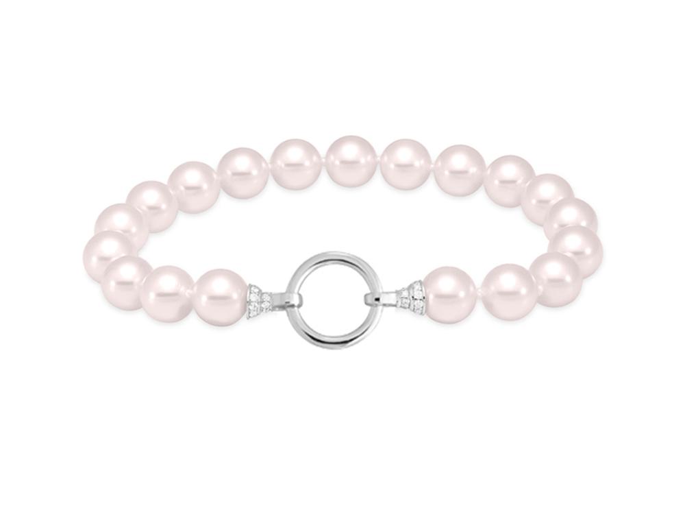 MASTOLONI – 18K White Gold 8-8.5MM White Round “A2” Quality Akoya Pearl Bracelet with 42 Diamonds 0.30 TCW 7.5 Inches