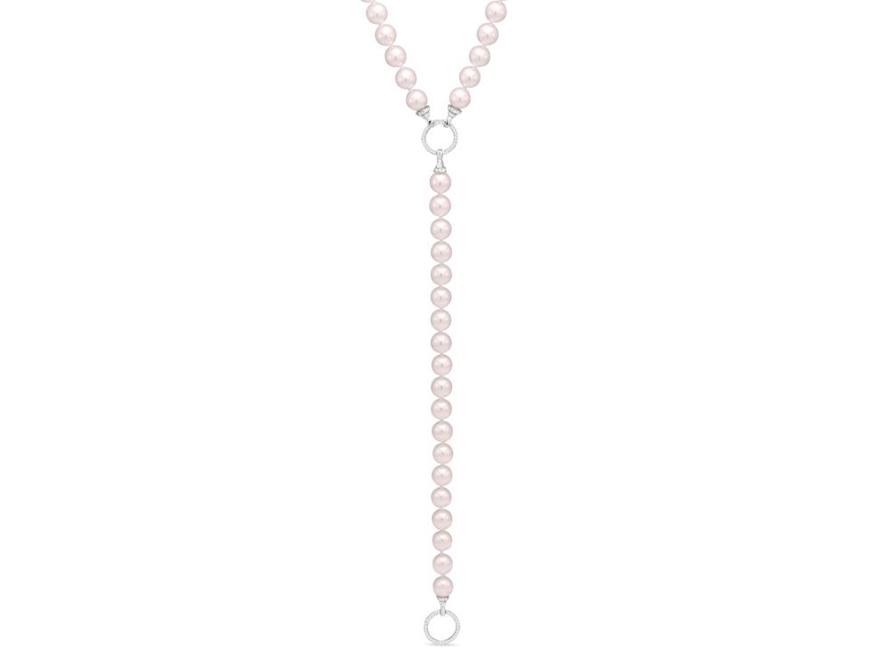 MASTOLONI – 18K White Gold 8-8.5MM White Round “A2” Quality Akoya Pearl Convertible Bracelet/Necklace Combo with 218 Diamonds 1.66 TCW 26.5 Inches