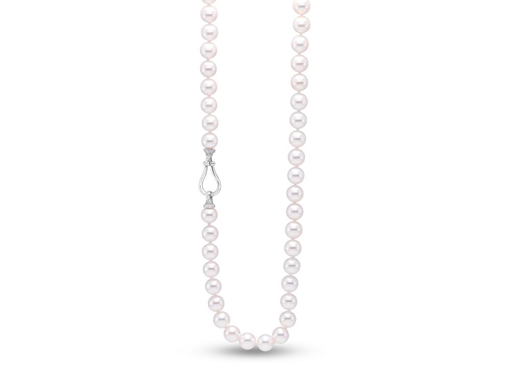 MASTOLONI – 18K White Gold 8-8.5MM White Round “A2” Quality Akoya Pearl Convertible Necklace/Bracelet Combo with 84 Diamonds 0.60 TCW 26.5 Inches