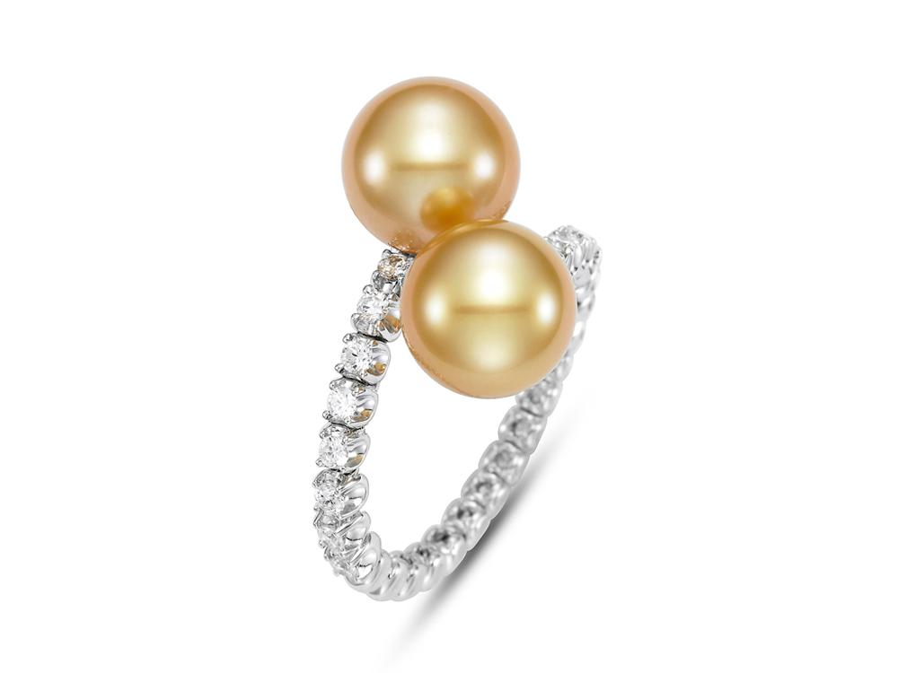 MASTOLONI – 18K White Gold 9.6MM Golden Round South Sea Pearl Ring with 14 Diamonds 0.41 TCW
