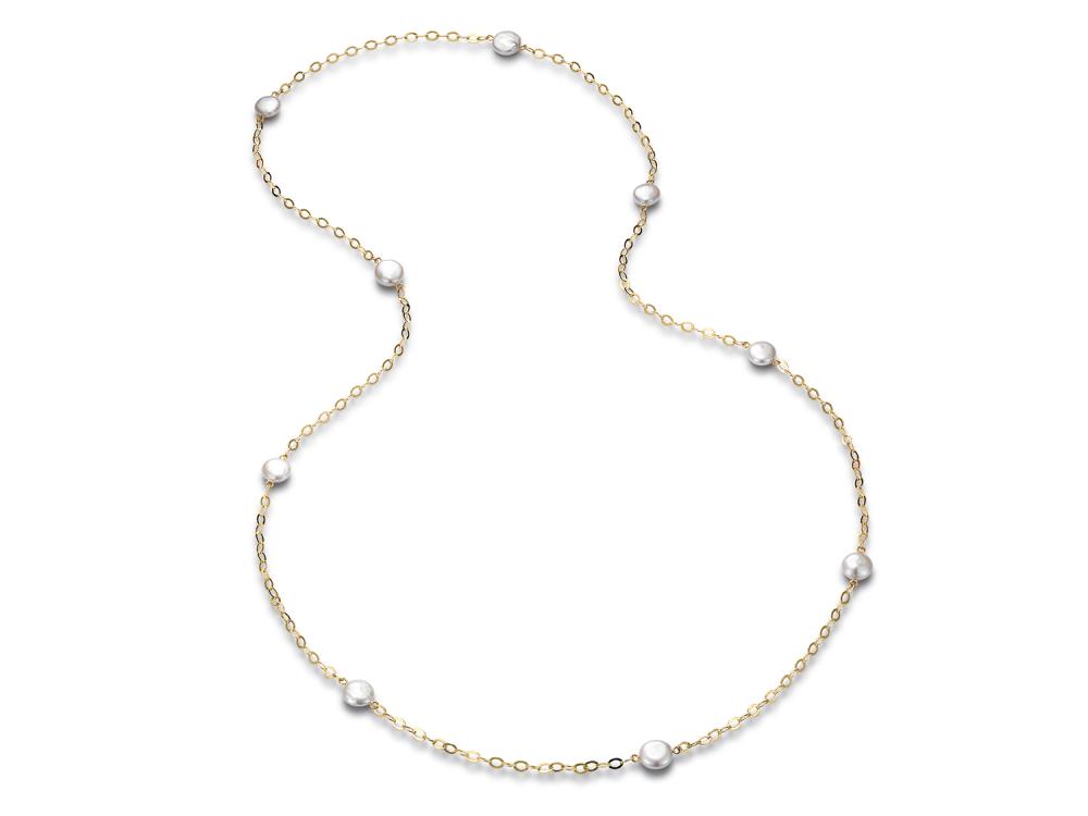 MASTOLONI – 18K Yellow Gold 10-11MM White Near Round Freshwater Pearl Necklace 36 Inches