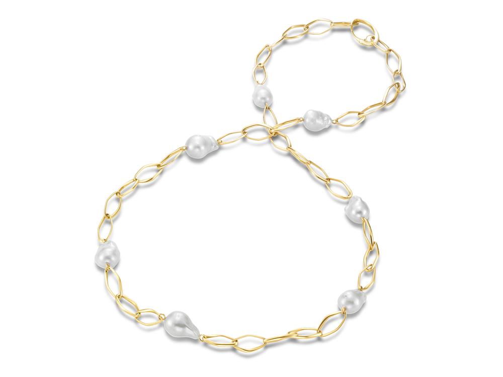 MASTOLONI – 18K Yellow Gold 15-18MM White Baroque Freshwater Pearl Necklace 38 Inches