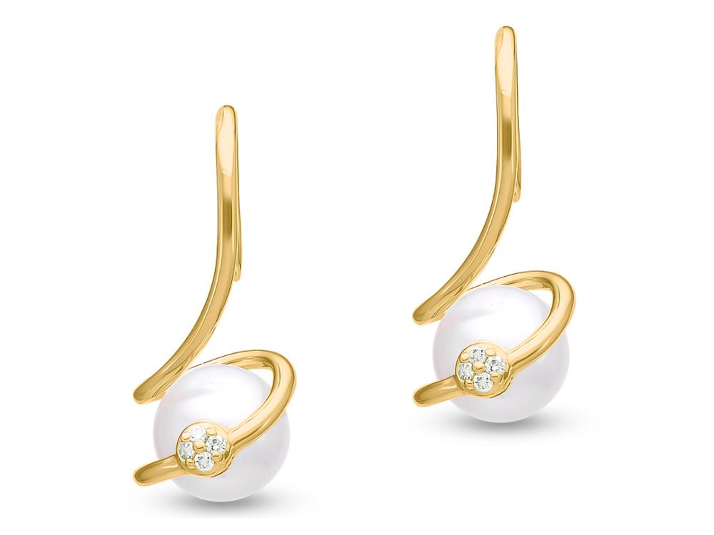 MASTOLONI – 18K Yellow Gold 8-8.5MM White Round Cultured Pearl Shepherds Hook Earring with 8 Diamonds 0.06 TCW
