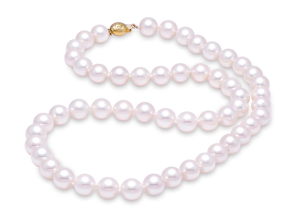 MASTOLONI – 18K Yellow Gold 9-9.5MM White Round “A” Quality Akoya Pearl Strand 20 Inches
