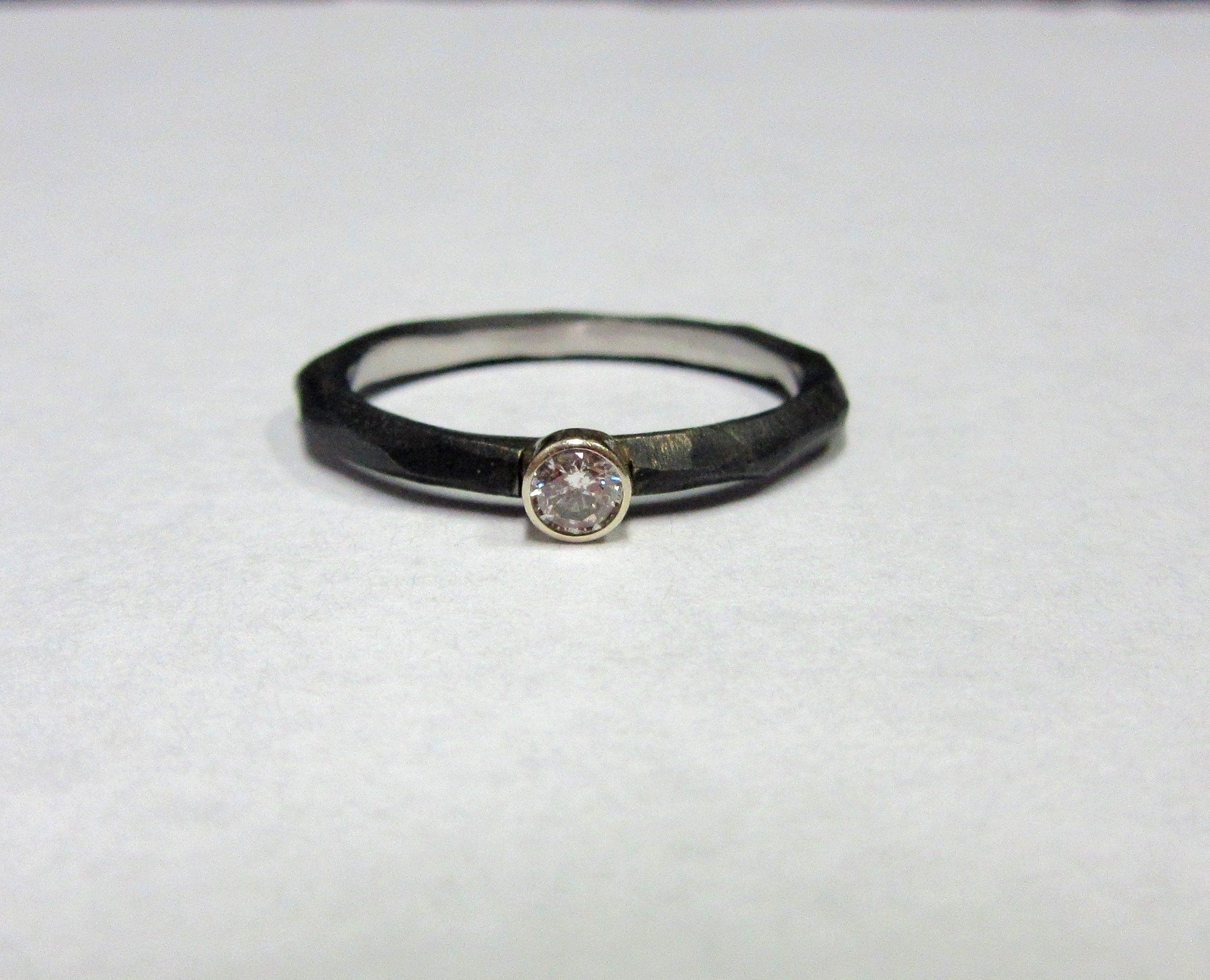 Rouge River Stack Ring, one diamond 0.10 ct, stainless steel, size 6